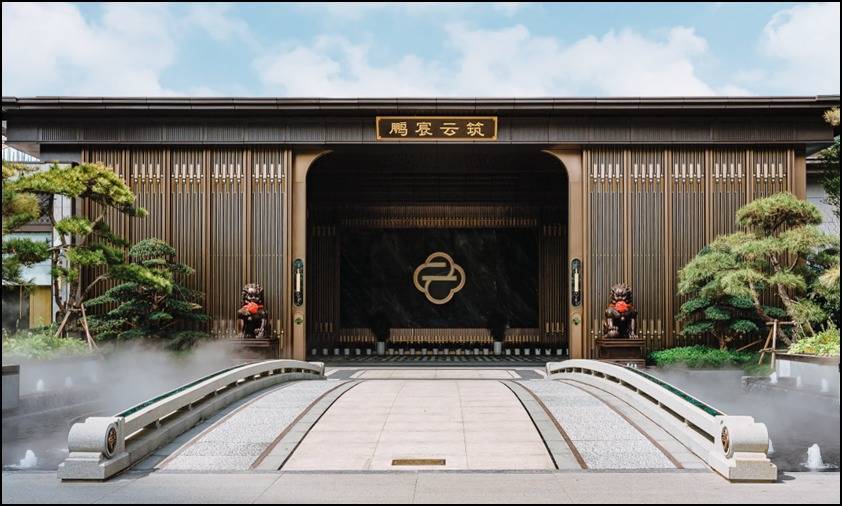 鹏宸云筑西区园林溯源岭南四大名园之首的清晖园,承袭其“前庭后院”规制,以“一轴一心一环”骨架打造“山水六境”园林。入口处的琉璃影壁、中心区域的叠水飞虹、折桂轩内的《富春山居图》艺术玻璃、小飞虹琉璃桥等细节,均以现代手法转译岭南匠艺。水榭、拱桥、奇石等经典元素融入全龄空间,使园林成为可游可赏的文化藏品,让居者日常浸润于风雅意境之中。